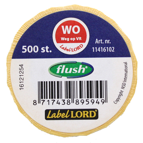 Gekleurde LABELLORD dagetiketten met "weg op" aanduiding voor het eenvoudig coderen van aangebroken verpakkingen of bereide producten met een maximale houdbaarheid van 2 dagen.